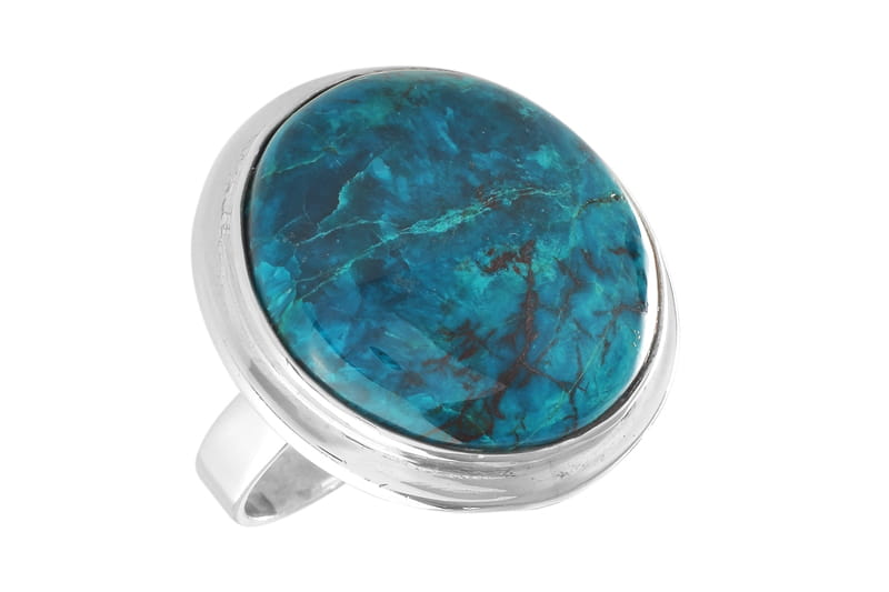 Pierścionek srebrny chryzokola z hematytem P321